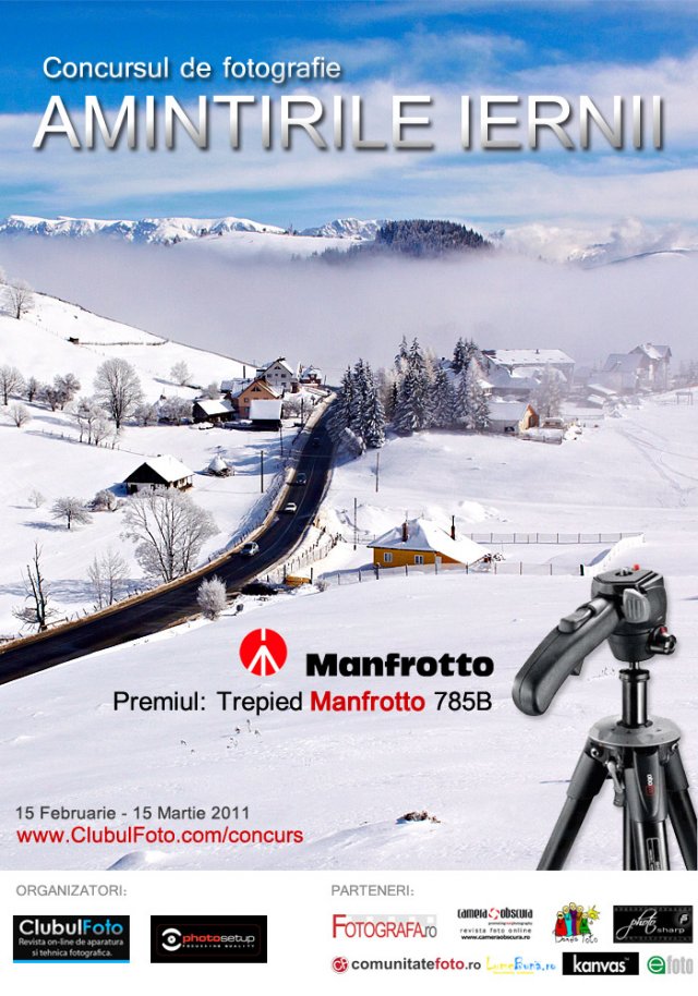 ClubulFoto.com si Photosetup au lansat, pe 15 Februarie, concursul de fotografie cu tema “Amintirile iernii”. Concursul se desfăşoară on-line, participanţii fiind aşteptaţi să se înscrie pe site-ul http://www.clubulfoto.com/concurs/. Fotografia câştigătoare va fi premiată cu un trepied Manfrotto 785B oferit de către Photosetup!