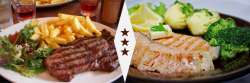 + Muşchiuleţ de porc în crustă de muştar cu cartofi fondanţi şi salată de murături